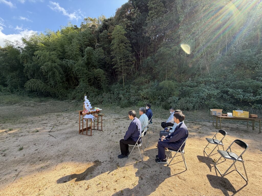 少し大掛かりな工事でたくさんの樹木を倒したり、山の形を大きく変える仕事に接して、地鎮祭を行いました。